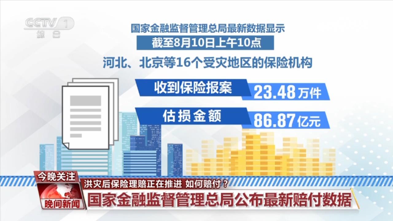 國家金融監(jiān)督管理總局最新數(shù)據(jù)顯示,截至8月10日上午10時,河北、北京等16個受災(zāi)地區(qū)的保險機構(gòu)收到保險報案23.48萬件,估損金額86.87億元;目前已賠付案件9.23萬件,賠付金額8.31億元。