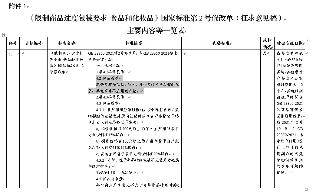 央視網(wǎng)消息:據(jù)工業(yè)和信息化部,根據(jù)國(guó)家標(biāo)準(zhǔn)委下達(dá)的強(qiáng)制性國(guó)家標(biāo)準(zhǔn)制修訂計(jì)劃,工業(yè)和信息化部組織完成了《限制商品過(guò)度包裝要求 食品和化妝品》強(qiáng)制性國(guó)家標(biāo)準(zhǔn)第2號(hào)修改單(征求意見(jiàn)稿)的編制工作。為進(jìn)一步聽(tīng)取社會(huì)各界意見(jiàn),現(xiàn)對(duì)標(biāo)準(zhǔn)征求意見(jiàn)稿及編制說(shuō)明予以公示,截止日期2023年9月17日。