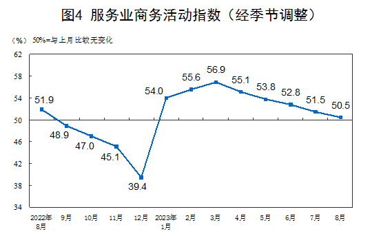 8月份,非制造業(yè)商務(wù)活動指數(shù)為51.0%,比上月下降0.5個百分點,仍高于臨界點,非制造業(yè)持續(xù)擴張。
