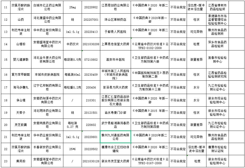 為加強(qiáng)藥品質(zhì)量監(jiān)管,保障公眾用藥安全,根據(jù)《中華人民共和國(guó)藥品管理法》及相關(guān)法律法規(guī)和江西省藥品抽檢計(jì)劃,我省各級(jí)藥品監(jiān)管部門和檢驗(yàn)機(jī)構(gòu)對(duì)全省藥品生產(chǎn)、經(jīng)營(yíng)和使用單位實(shí)施了監(jiān)督抽檢?,F(xiàn)將本期藥品抽檢信息通報(bào)如下: