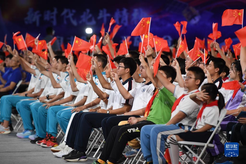 9月21日,在內(nèi)蒙古阿拉善盟額濟(jì)納旗,學(xué)生在做趣味實(shí)驗(yàn)。新華社發(fā)(敖琪 攝)
