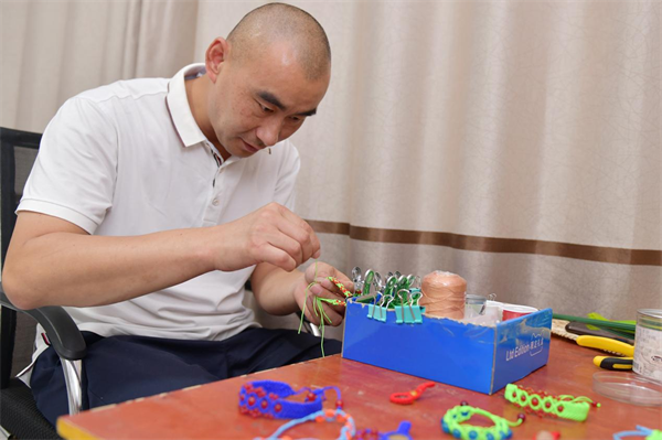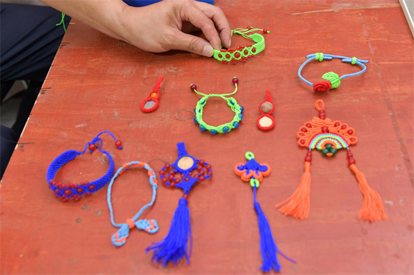 在一張約一平方米的桌子上,擺滿(mǎn)了小燈籠、小手鏈、小掛件……看著如此精致、細(xì)小的工藝品,一位心靈手巧的姑娘形象便會(huì)映入眼簾。