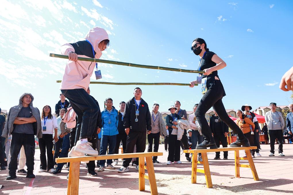 活動(dòng)現(xiàn)場(chǎng)還舉行了凳上大比拼、漂洋過(guò)海塞龍珠、扭扁擔(dān)、剝玉米粒、長(zhǎng)筷夾洋芋、挑水慶豐收……鄉(xiāng)村趣味運(yùn)動(dòng)會(huì)把日常的農(nóng)事活動(dòng)與體育運(yùn)動(dòng)相融合,具有濃郁的鄉(xiāng)村特色,規(guī)則雖簡(jiǎn)單,但趣味性十足,既是技藝與速度的比拼,又考驗(yàn)團(tuán)隊(duì)協(xié)作能力。