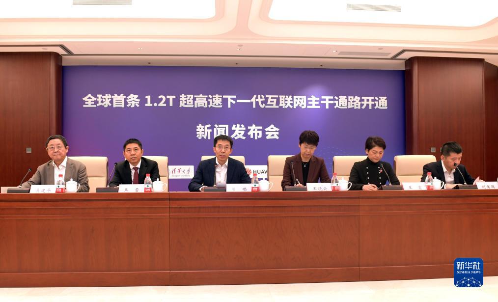 11月13日,全球首條1.2T超高速下一代互聯(lián)網主干通路開通新聞發(fā)布會在清華大學舉行。新華社發(fā)(清華大學供圖)