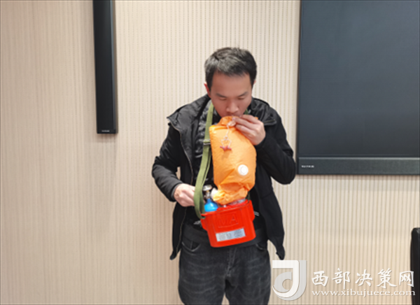 西部決策網(wǎng)訊  第一步,將自救器移至身體正前方。第二步,拉開自救器封條并取下上蓋,展開氣囊。第三步……