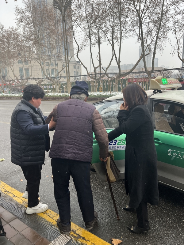 1月15日上午9:30,一位老人來到咸陽市政務(wù)服務(wù)中心要找民政局,由于老人年齡大且耳背,且為外地方言無法進行正常溝通,咨詢引導(dǎo)崗工作人員王佩、張伉拿出A4紙問一句寫一句,又在老人隨身攜帶物品中找到了老人身份證、老年證、老年手機,但手機已欠費,且電話簿為空,工作人員王佩又在老人手機通話記錄查找有無最近撥出和接聽的電話,終于找到了最近撥出頻次較高的聯(lián)系電話,但對方稱不認(rèn)識,接連又撥打了其他兩個電話,1個無人接聽,1個稱和老人是同村村民,村民又聯(lián)系到村書記,就這樣溝通、查找、聯(lián)系,撥打了十幾通電話,村書記告知我們其家人就在來的路上,考慮到大雪路滑,天氣寒冷,政務(wù)中心工作人員安排老人在大廳休息,幫老人倒上了熱水,叮囑老人耐心等待。直至下午15:10,家人一直未來政務(wù)大廳。政務(wù)中心工作人員繼續(xù)聯(lián)系到村書記,確定老人家里位置后,聯(lián)系出租車將老人扶上車,一路上政務(wù)中心工作人員多次和出租車司機電話聯(lián)系,直到知道村干部已將老人安全送回家,這才放下心來。