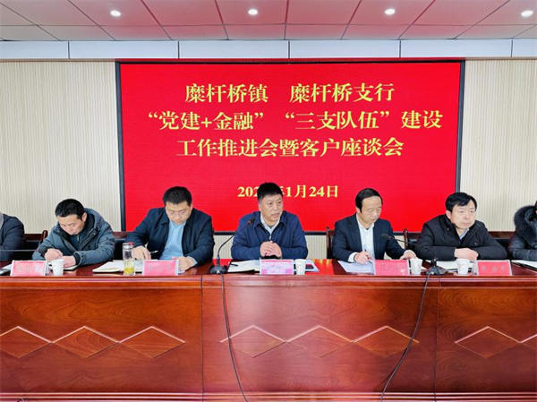 西部決策網(wǎng)訊(記者劉玉 韓宗憲 通訊員 陳曉強(qiáng))1月24日下午,寶雞市鳳翔區(qū)糜桿橋鎮(zhèn)召開(kāi)了“黨建+金融”“三支隊(duì)伍”建設(shè)工作推進(jìn)會(huì)暨客戶座談會(huì)。鳳翔農(nóng)商銀行負(fù)責(zé)同志應(yīng)邀出席,鎮(zhèn)領(lǐng)導(dǎo)班子成員、各村黨(總)支部書(shū)記,副主任及部分村民小組長(zhǎng)參會(huì)。
