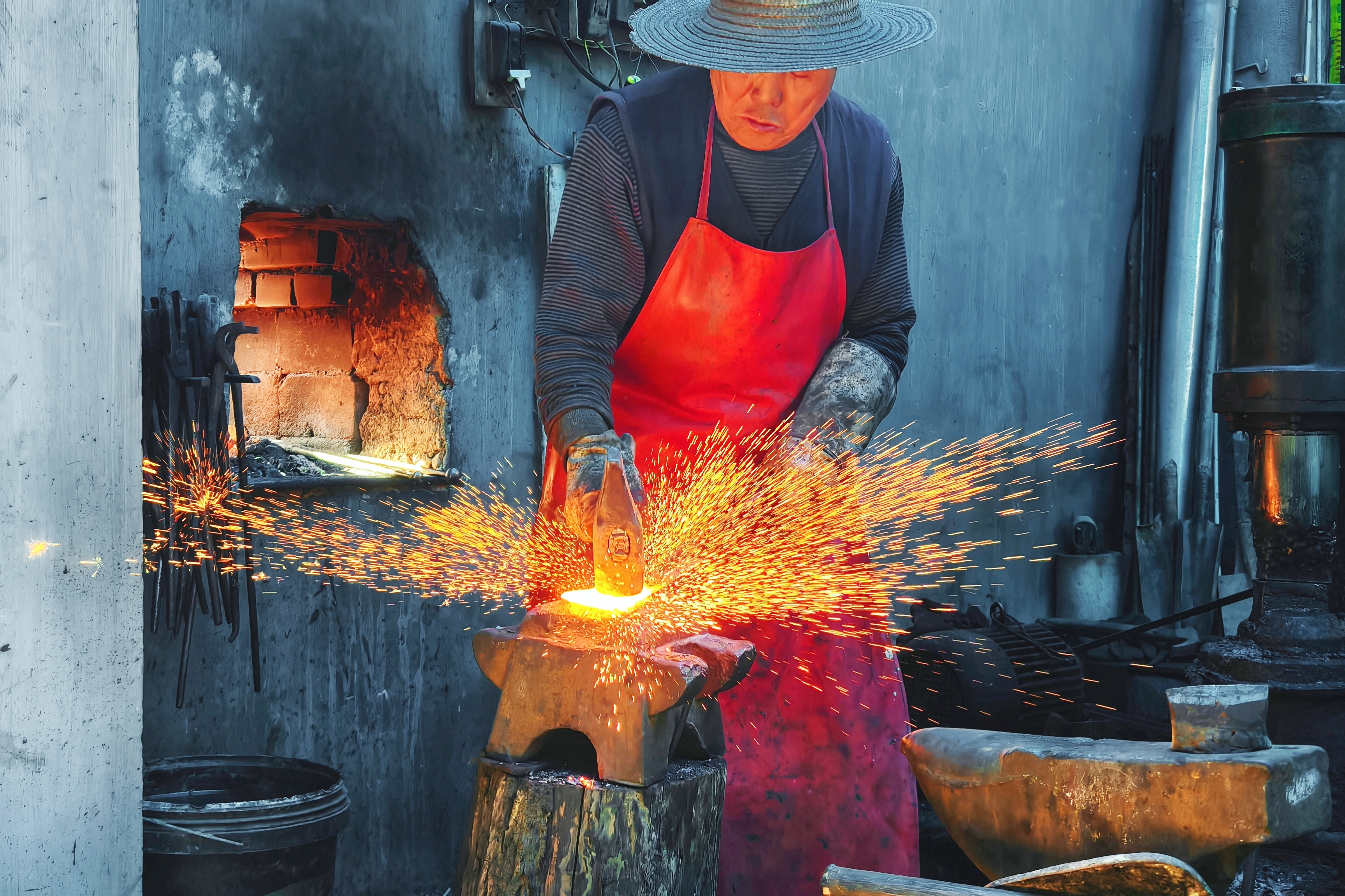 “打鐵是件苦差事,打一把柴刀要花兩個(gè)多小時(shí),賣五六十元,賺不了啥錢。”屈希望說,一把鐵具的誕生,要經(jīng)過燒、錘、敲、淬火、磨等工序,非??简?yàn)打鐵人的毅力。