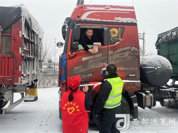 在各收費(fèi)站,工作人員也熱火朝天、行動起來,大家齊力清除廣場、車道積雪,做好交通管制解釋。志愿者們配足熱水、常用藥品和簡易維修工具等,為過往司乘開展出行引導(dǎo)和便民服務(wù),幫助司機(jī)解決困難。同時,為滯留的司乘朋友提供食物和休息,讓他們在寒冷冬日吃上熱騰騰的飯、感受到來自榆靖人的溫度。