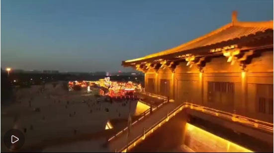 春節(jié)期間,西安各景區(qū)燈會(huì)夢(mèng)幻迷人眼,夜色中俯瞰流光溢彩,恍若再回長(zhǎng)安。大唐芙蓉園“新春大潮會(huì)”中絕美花燈形色各異,龍鳳花燈栩栩如生。鳳凰池上一組“龍游天空”燈組交織出璀璨的水上繁星,好似闖入東海龍宮。一步一景,滿園燈火輝煌,美不勝收。大明宮“上元唐宮燈會(huì)”20米高巨型花燈極具視覺張力,氛圍感拉滿,帶給市民游客“扶搖直上九萬里”長(zhǎng)安花燈的限定浪漫。