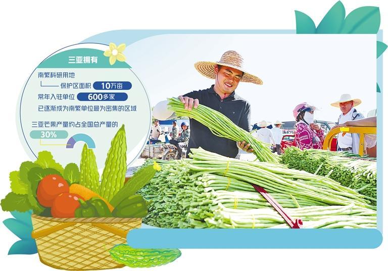 三亞蔬果業(yè)繁榮有賴于南繁種業(yè)基地的賦能。三亞擁有南繁科研用地保護(hù)區(qū)面積10萬畝,常年入駐單位達(dá)600多家,已逐漸成為南繁單位最為密集的區(qū)域。每年冬春,來自全國各大農(nóng)業(yè)科研機(jī)構(gòu)的6000名專家人才匯聚于此,田地間、實(shí)驗(yàn)室、人才小院處處可見他們的身影,培育出最適合生長在三亞市崖州區(qū)這片土地上的“致富苗”。