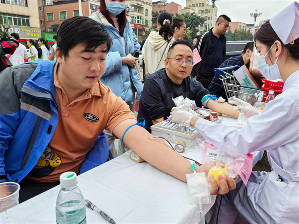 在廣州市白云區(qū)第二人民醫(yī)院無償獻(xiàn)血活動現(xiàn)場,志愿者們在醫(yī)務(wù)人員的指引下有序排隊,填寫登記表、測量血壓、抽血化驗、完成采血等一系列程序,隨著一股股鮮血緩緩流入血袋,志愿者們濃濃的愛心也傳遞了出去。