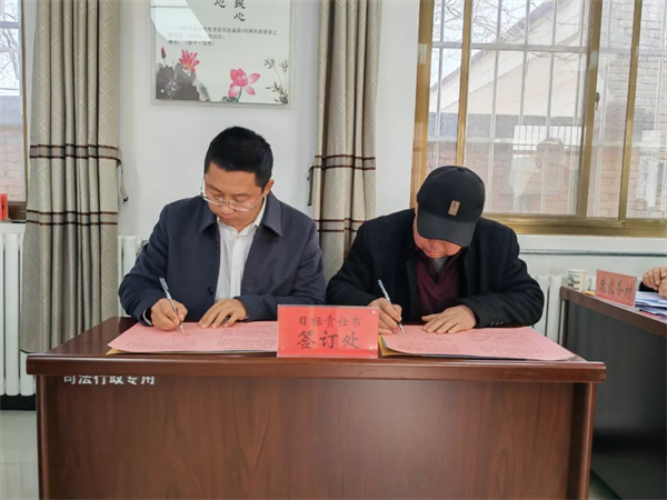 黨政主要領(lǐng)導(dǎo)與各村簽訂目標(biāo)責(zé)任書,將指標(biāo)轉(zhuǎn)化為工作目標(biāo),將壓力轉(zhuǎn)化為工作動(dòng)力,將責(zé)任轉(zhuǎn)化為工作使命,確保全年工作高線達(dá)標(biāo)。