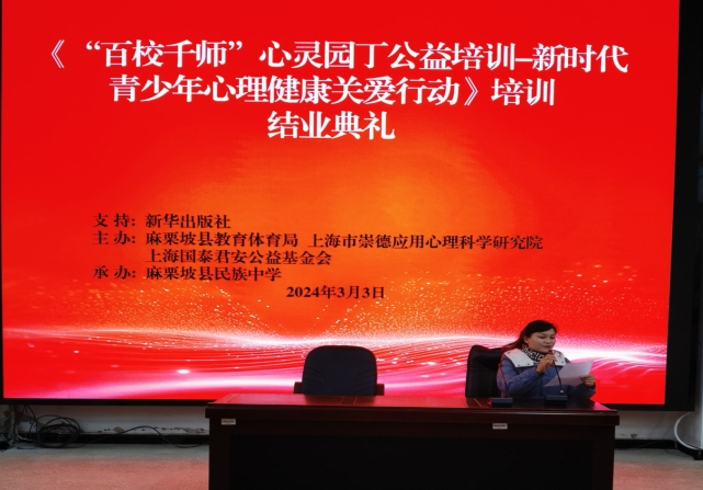 3月2日至3日,由滬文協(xié)作教學(xué)幫扶專家龔志珍同志牽線搭橋引進的《“百校千師”心靈園丁公益培訓(xùn)——新時代青少年心理健康關(guān)愛》培訓(xùn)項目,在麻栗坡縣民族中學(xué)隆重舉行。