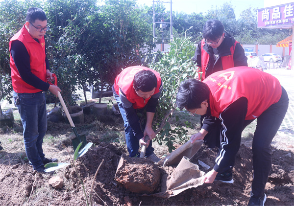經(jīng)過一上午緊張的勞動,新培的50余顆桂花樹苗在春日里展現(xiàn)出勃勃生機(jī),原本光禿的地段已經(jīng)穿上了綠色的衣裳!