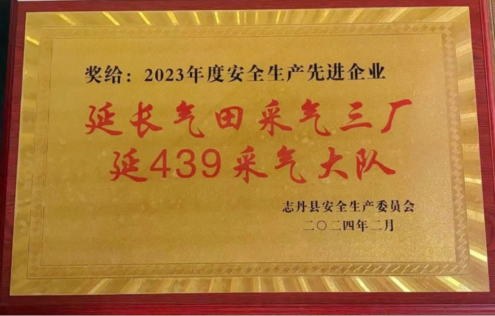 西部決策網(wǎng)訊 近日,從志丹縣安全生產(chǎn)委員會傳來喜訊,延439采氣大隊(duì)被授予志丹縣“2023年度安全生產(chǎn)工作先進(jìn)企業(yè)”榮譽(yù)稱號。